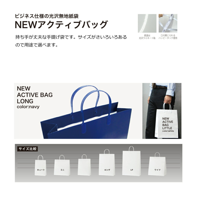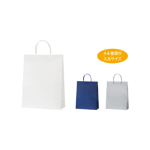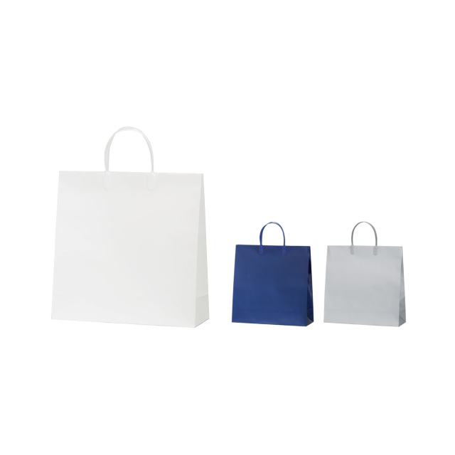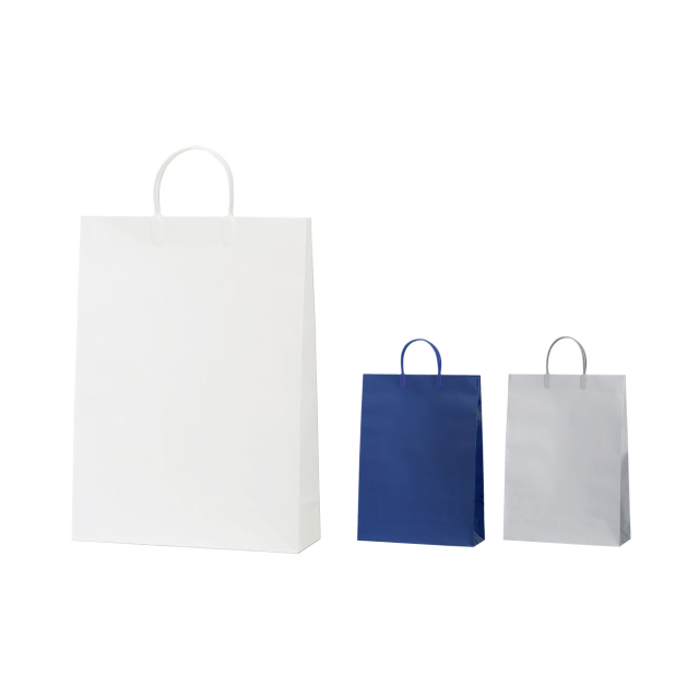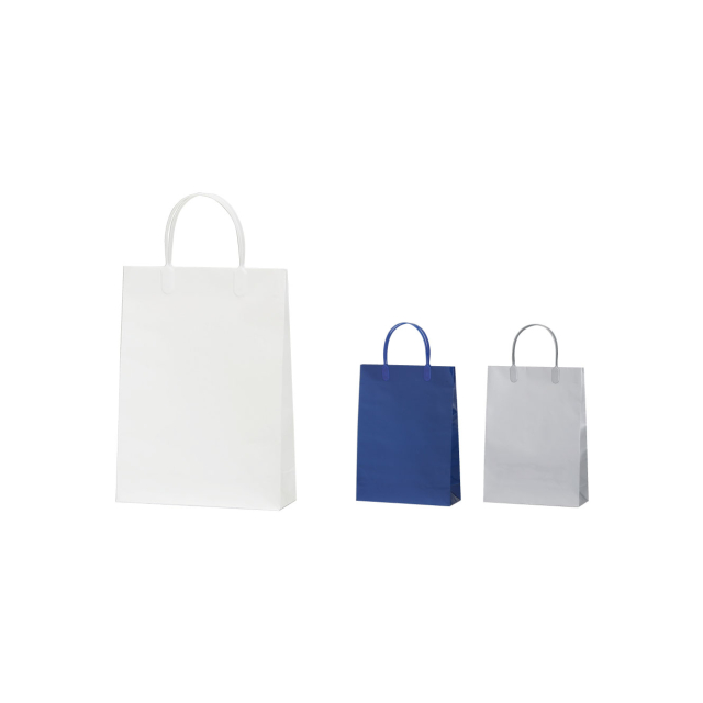 | 全サイズ共通 【素材】 本体/コート紙 表面加工/PP光沢ラミネートフィルム 持ち手/プラスチックハンドル 口・底ボール有り |