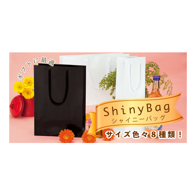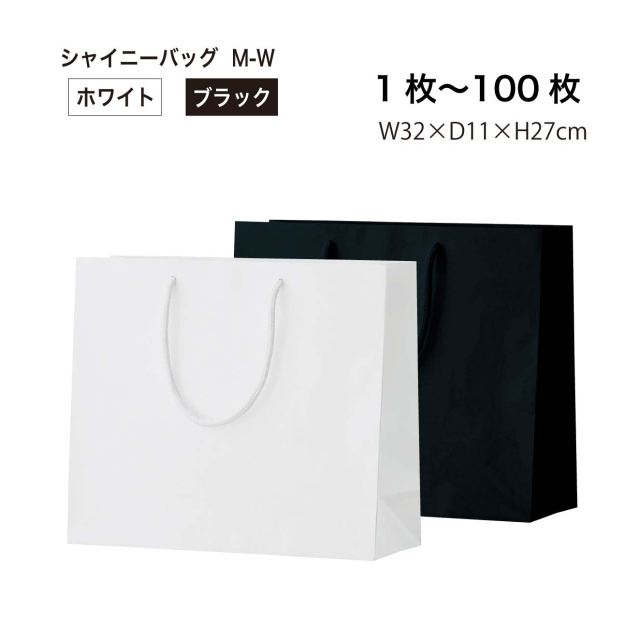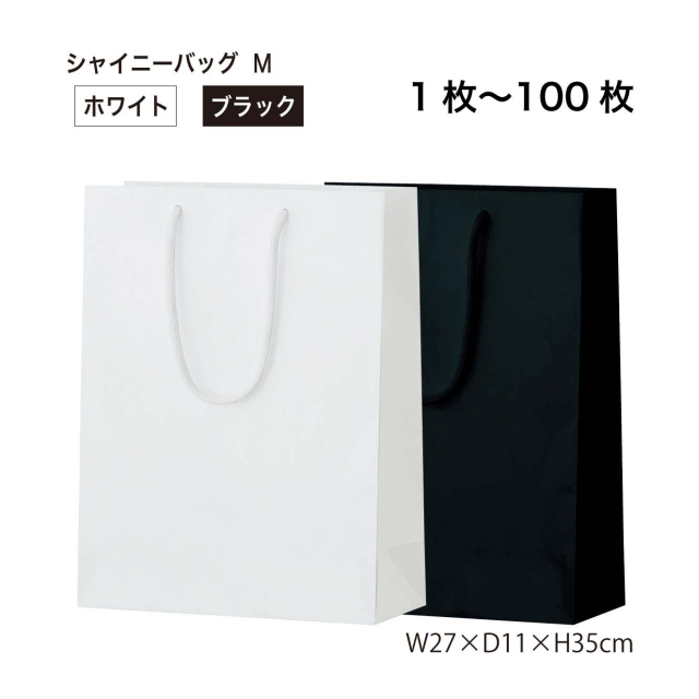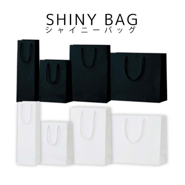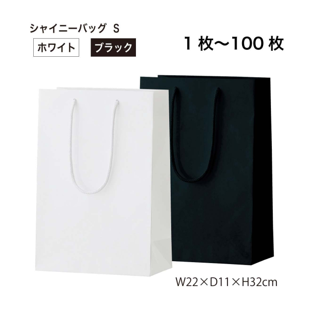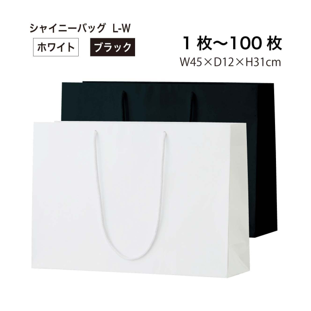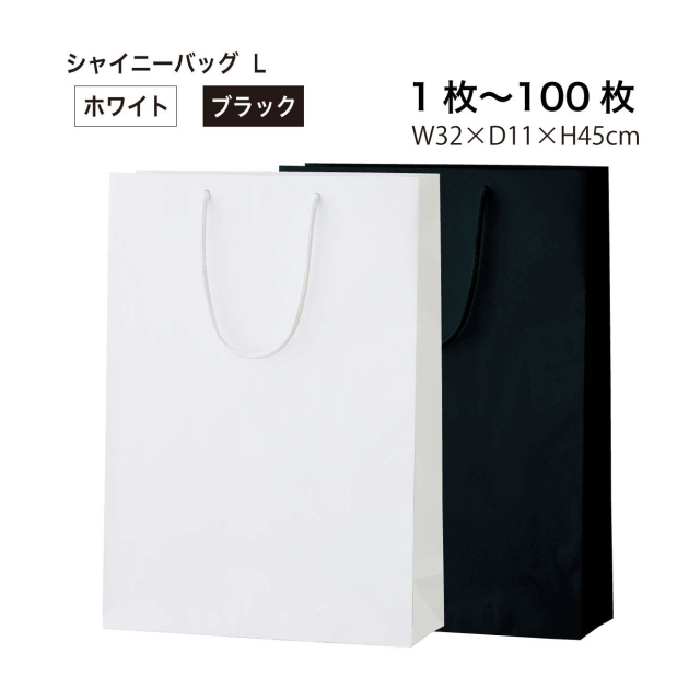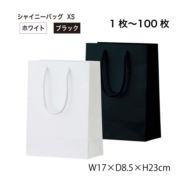 プレーンなホワイトとブラックの光沢のある紙袋。