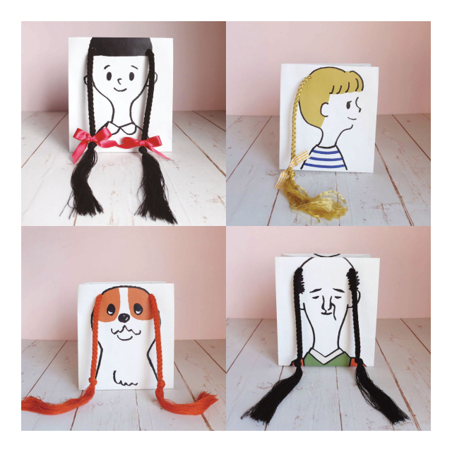 おさげバッグ・・・髪型が変えられる!?おもしろい紙袋「髪袋」。三つ編みやポニーテールの女の子や、垂れ耳犬のキャバリアちゃん、そして落武者感もある武士などの絵柄があります。今季からは当社オリジナル以外のデザインも受け付け、ご当地紙袋やオリジナルのマスコットキャラクターでのアレンジもデザイン可能になりました。ご興味がある方はお見積りも受け付けていますのでぜひお声がけください。