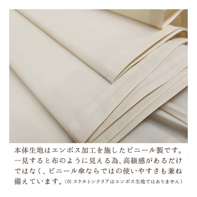 | 素材:生地・露先/POE、親骨/FRP、受骨・中棒/鉄(黒)、ハンドル・石突/PP |