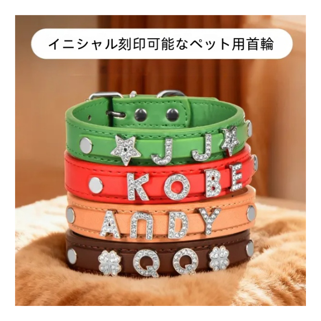 おしゃれで個性的なアクセサリーで愛犬を特別に演出できる、オーダーメイド対応のフェイクレザー製ドッグカラーが登場!柔らかくて丈夫なフェイクレザーを使用し、首回りに快適にフィット。被毛や肌にやさしく、日常のお手入れもサッと拭くだけ簡単。最大の特徴は、カスタマイズ可能なイニシャルデザイン。愛犬の名前やイニシャル(キラキラ輝くラインストーン付き)を入れられ、世界にひとつだけの首輪に仕上がります。さらに、星やクローバーなどの可愛い装飾アクセサリー付きで、おしゃれ度もアップ。カラーバリエーションも豊富で、バックルでサイズ調節可能なため、様々な体格の犬に対応し、どんな性格の子にもぴったりマッチします