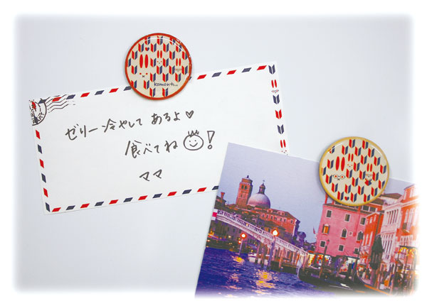 冷蔵庫やホワイトボードにメモや写真を留めるのに大活躍するマグネットです。