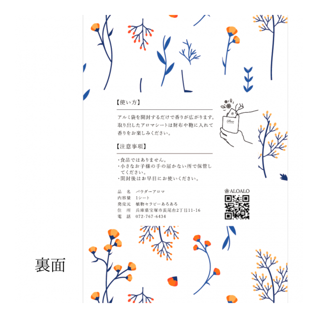 | 【サイズ】 縦148mm×横105mm×厚さ2mm 【内 容】 アロマシート 1枚 |