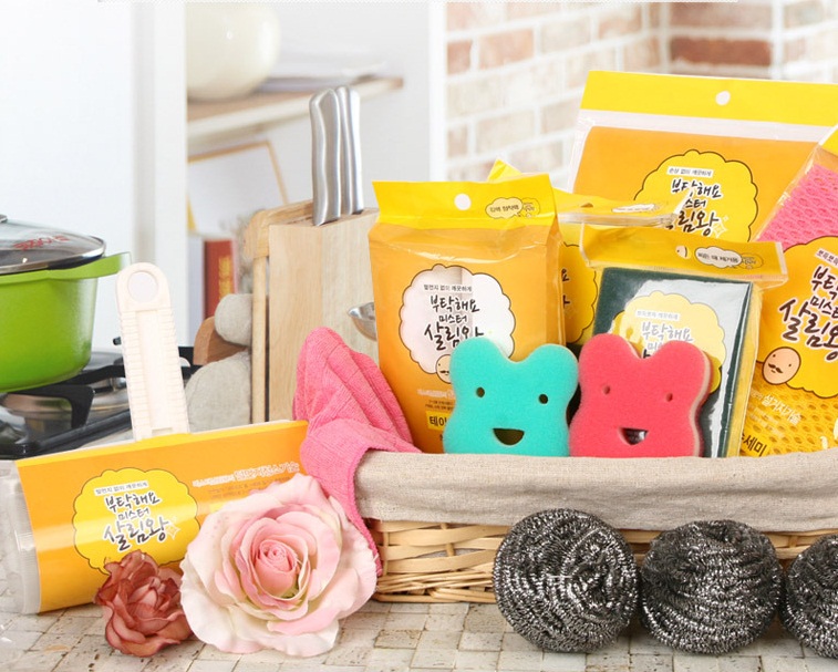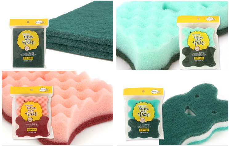 ソフトタイプ、ハードタイプ、どんな形にも対応できる韓国産の抗菌たわしです。