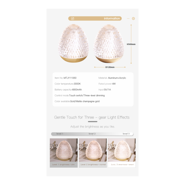 ポータブル アクリル ダイヤモンド ヘーゼルナッツ型 アンビエントランプ