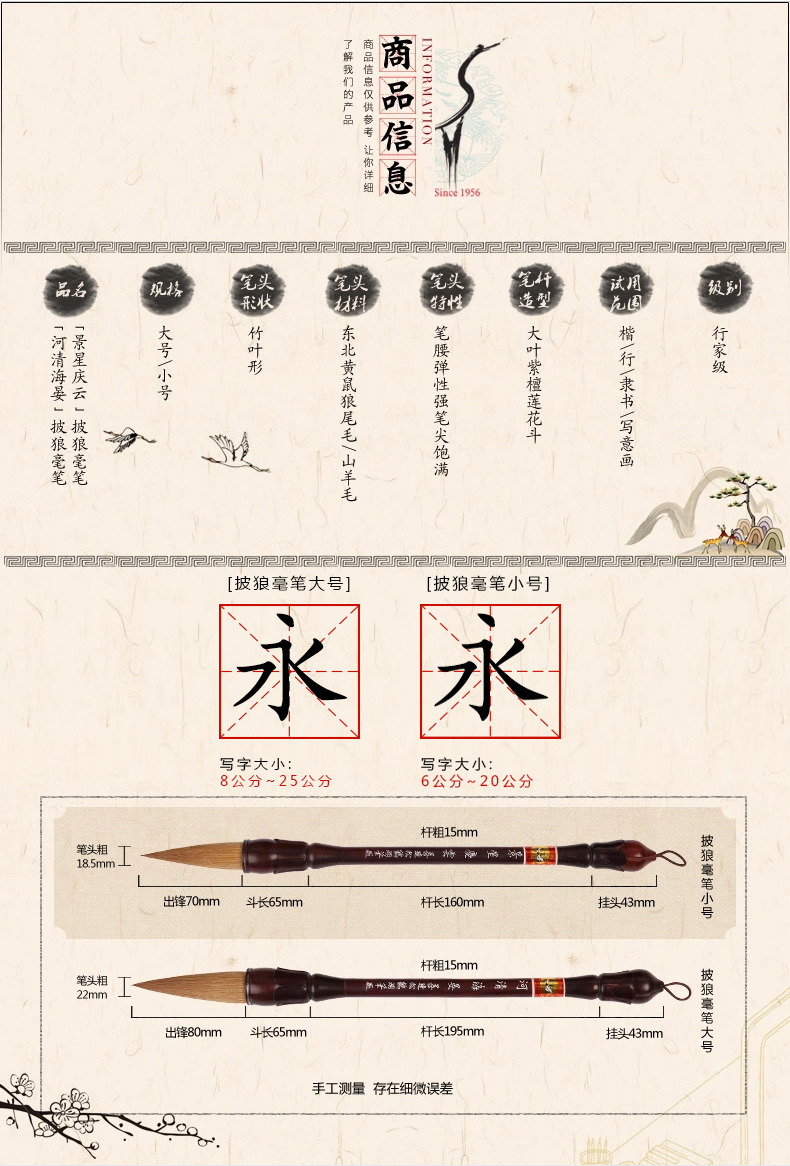 商品情報 楷書、隷書、行書に適した筆です。