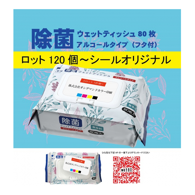除菌ウェットティッシュ80枚アルコールタイプ(フタつき)