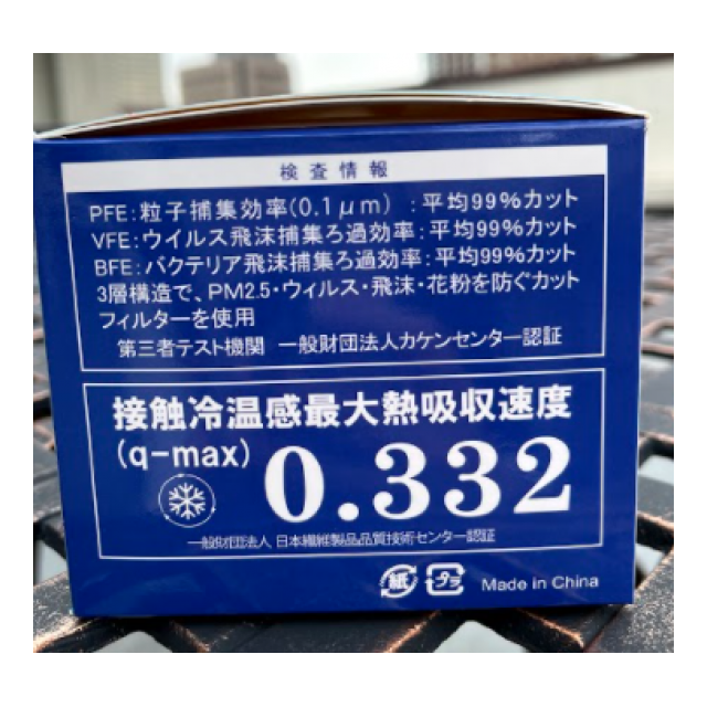 ・接触冷温感最大熱吸収速度(q-max)は、0.332w。