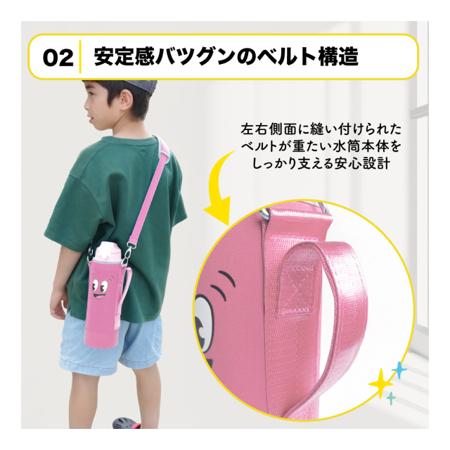 【安定感抜群のベルト構造】左右両側縫い付けで重たい水筒も安定して支える