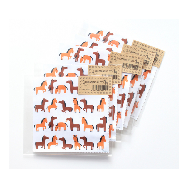 馬の日常のかわいいしぐさを描いたクリーニングクロスです。