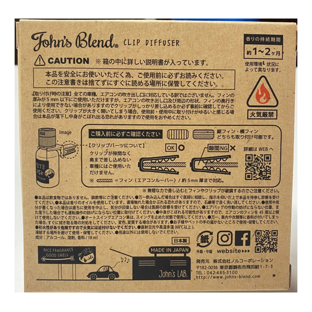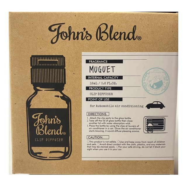 濃縮された新鮮なアロマオイルをそのままに、カーフレグランス用に調香した、Johnこだわりの香りのクリップ型ディフューザー。エアコンルーバーに取り付けるだけで、送風とともに車内ここちよい香りが広がります。