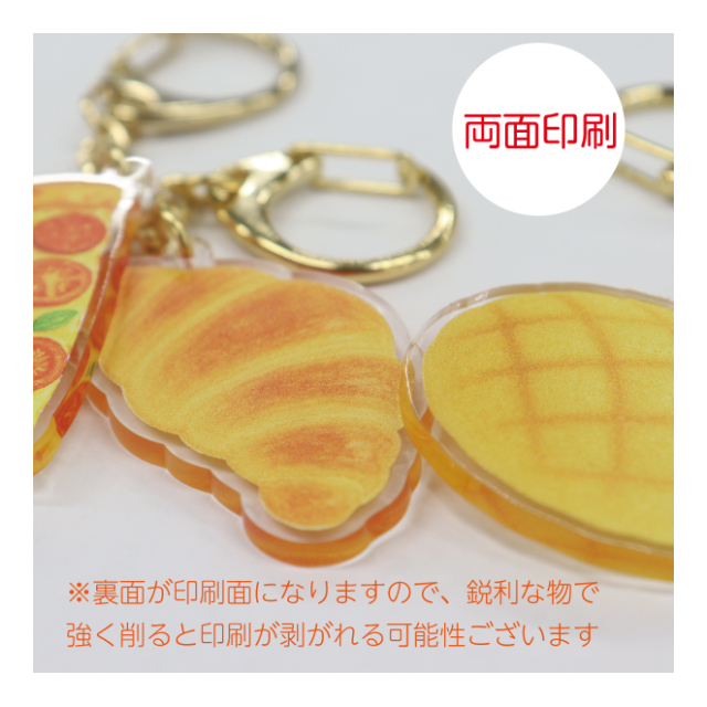 カバンやポーチに付けられるナスカン付きのアクリルキーホルダー