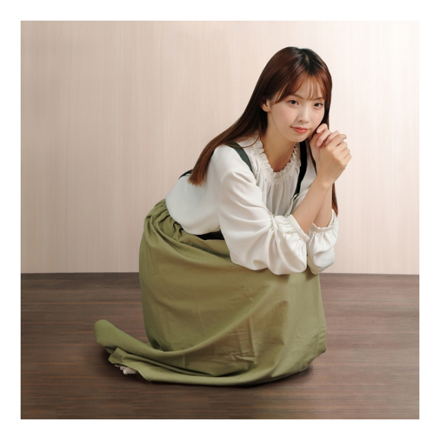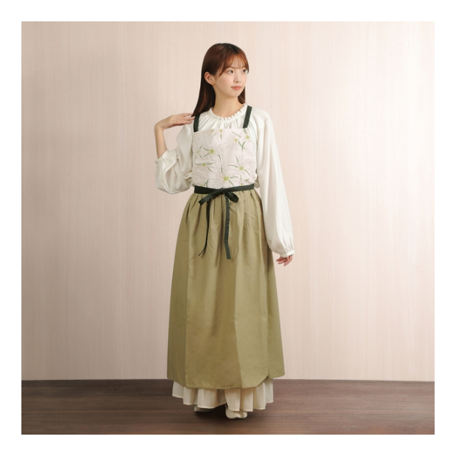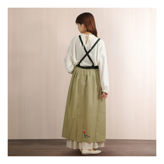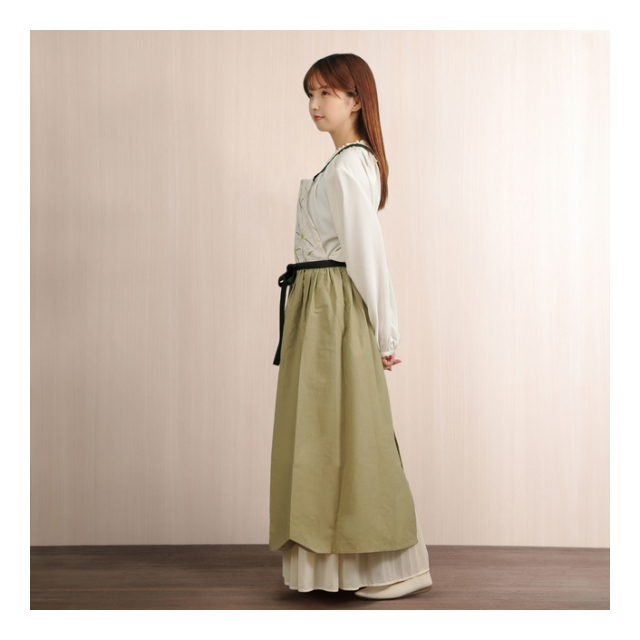 | 【サイズ】丈105cmx腰幅75cmx裾幅144cm x 肩紐85cm x 腰紐89cm |