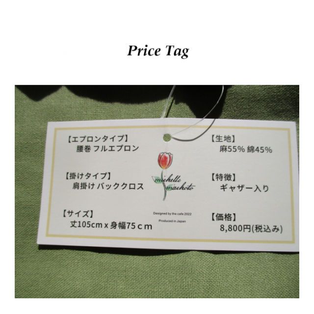 臀部の隠れる腰巻ギャザーエプロンです。リネン100%と比較してシワがよりづらいです。肩高さを調節できる為、紐がずれ落ちしないです。ラジオや新聞にも掲載されたおしゃれエプロンです。プレゼントにもおススメです。