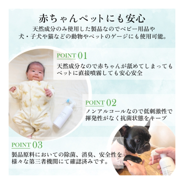 【ポイント2】天然成分なので赤ちゃんやペットがいる家庭にも安心です。