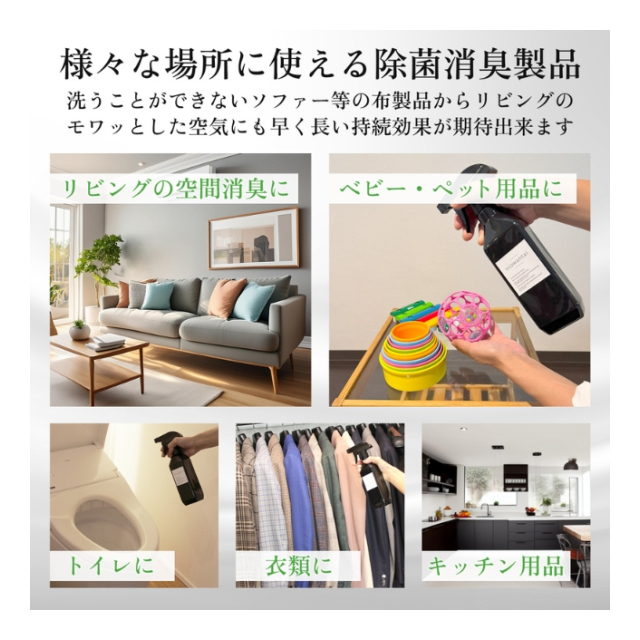 【 用途1】空間の除菌消臭(キッチン、子ども部屋、トイレ、リビング、玄関、家中丸ごと!!、車の中等々)