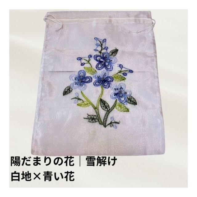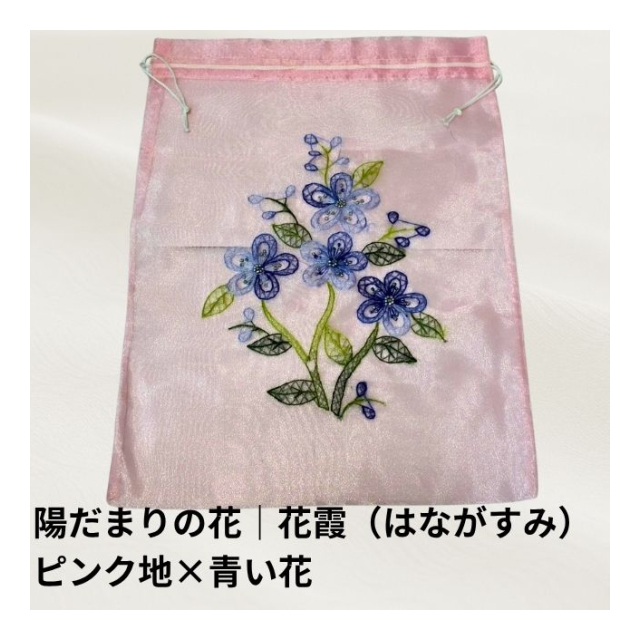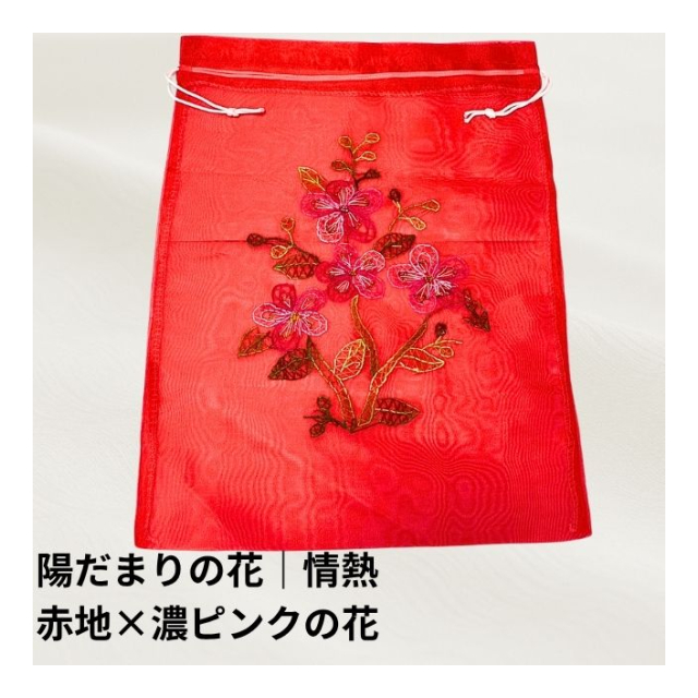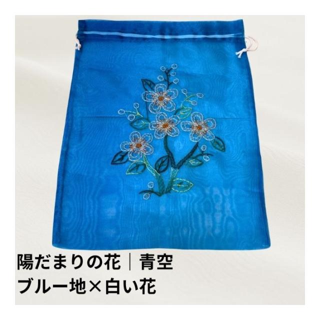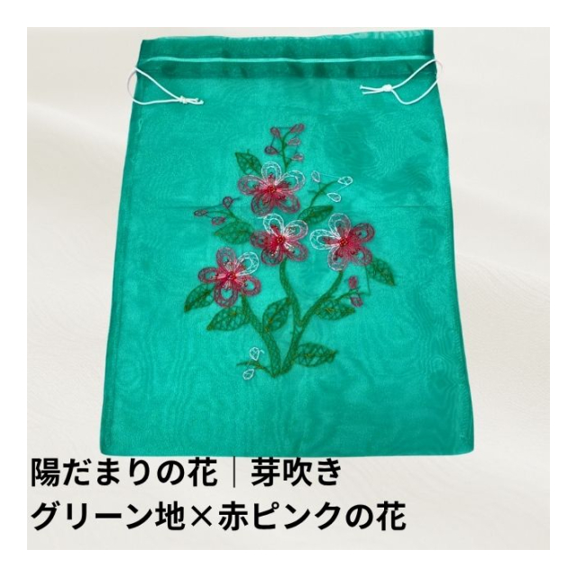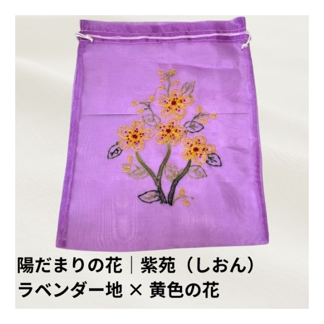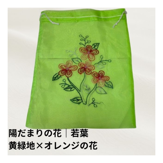 オーガンジー巾着袋:ベトナム刺繍(陽だまりの花シリーズ)