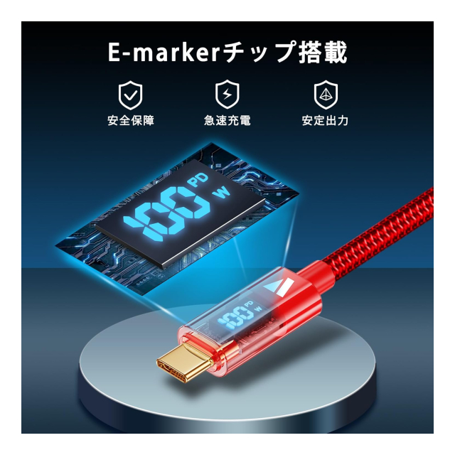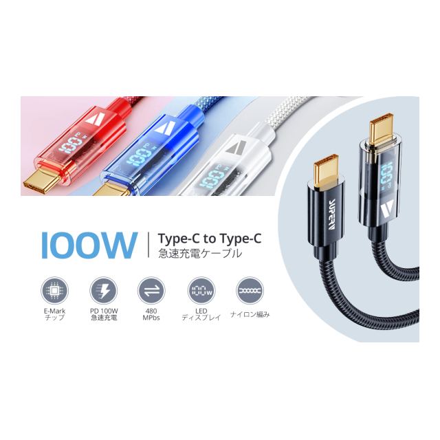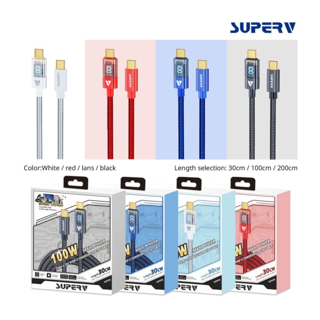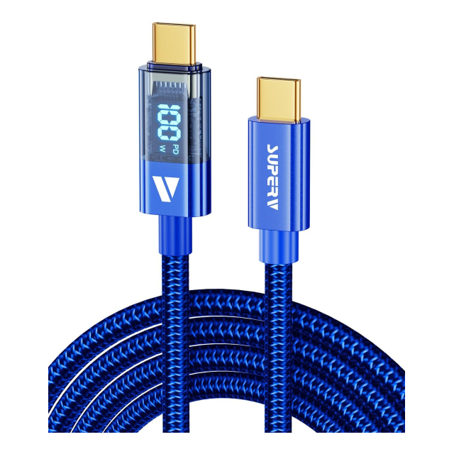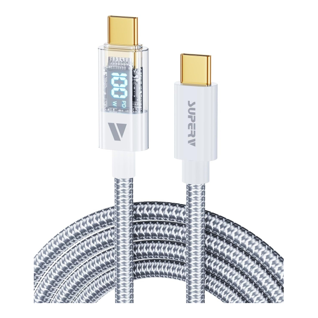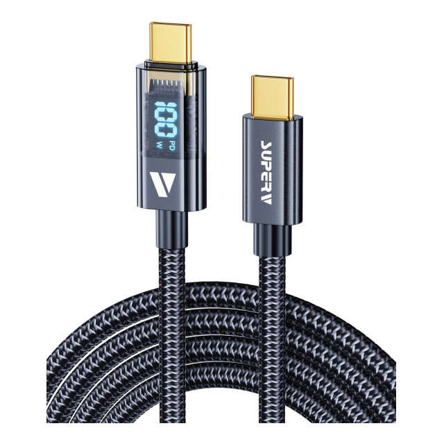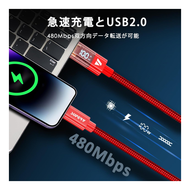 SUPERV Rt4 急速充電 USB C to C ケーブル [100W PD対応 30~200cm] LEDディスプレイ内蔵 iPhone Android 各種