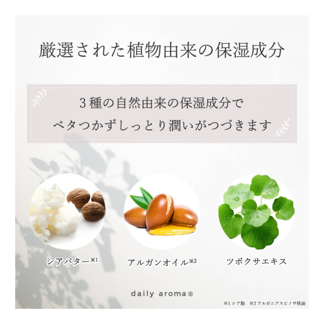 | ●肌に異常が生じていないかよく注意して使用してください。●肌に合わない時、使用中に赤み、はれ、かゆみ、刺激、色抜け(白斑等)や黒ずみ等の異常が出た時、日光があたって同様の異常が出た時は使用を中止し、皮フ科医に相談してください。使い続けると症状が悪化することがあります。●肌に異常がある時は使用しないでください。●使用後は必ずキャップを閉めてください。●お子様や認知症の方等の誤食に注意してください。●高温多湿・日光のあたるところに保管しないでください。●自然由来成分を使用しているため、稀に変色が生じる場合があります。また時期により香りや質感が若干異なる場合がありますが、品質には問題ありません。 |