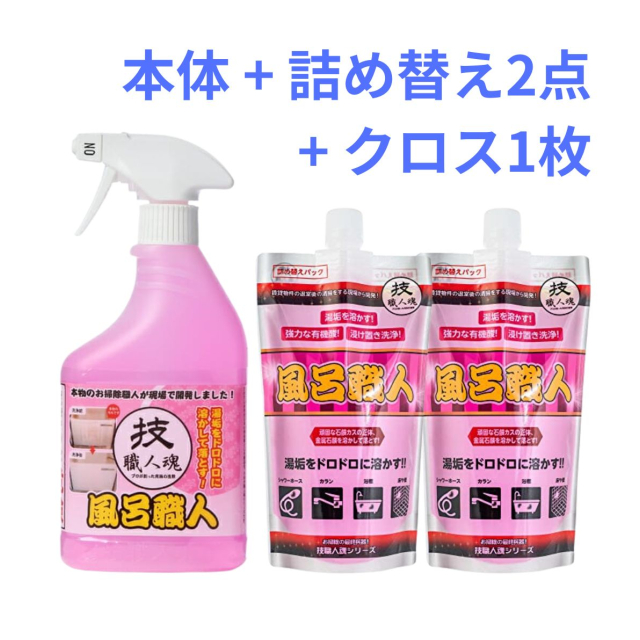 風呂職人 500ml+詰め替え400ml2点とクロスのセット
