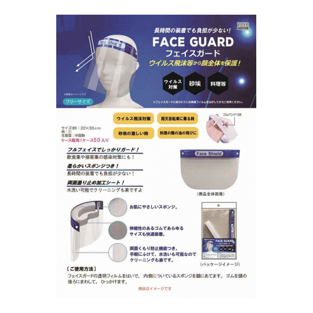 ウイルス飛沫等から顔全体を保護!!フェイスガード