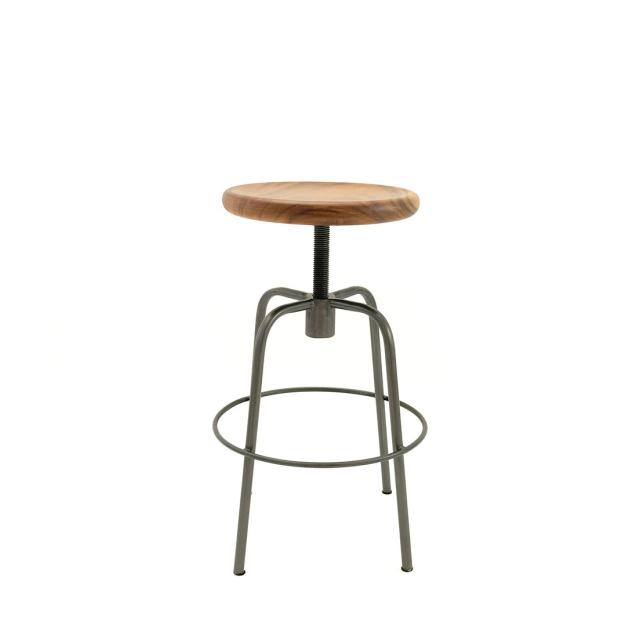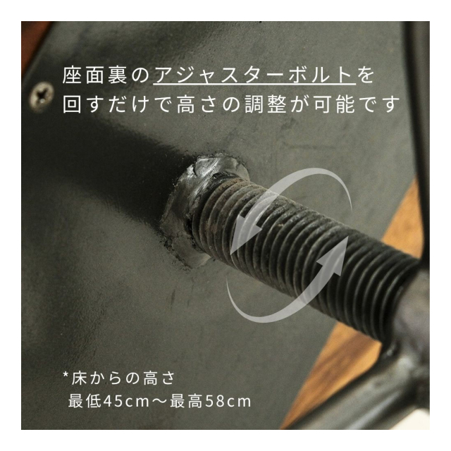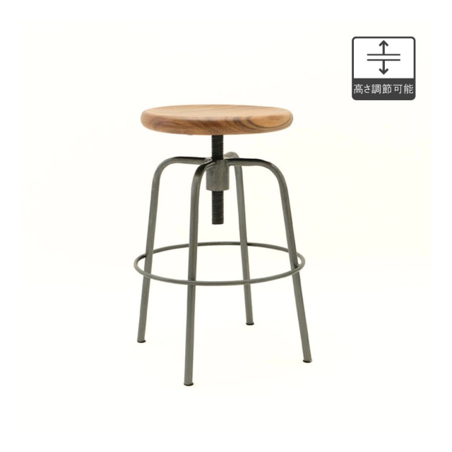インダストリアルな雰囲気漂うアイアンフレームと、深みのある木目が魅力的なアカシア材を組み合わせたスツールです。座面には、しっかりとした厚みのあるアカシアの無垢材を使用。脚部分には高さ調整機能が付いているため、使う場所や用途に合わせて最適な高さに調節可能です。カウンターチェアとして、作業用の椅子として、またはちょっとした腰掛けとしてなど、様々なシーンで活躍します。重厚感のある佇まいは、置くだけで空間に力強い個性を与え、ヴィンテージライクな雰囲気を演出します。
