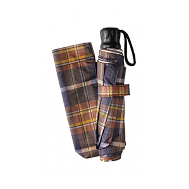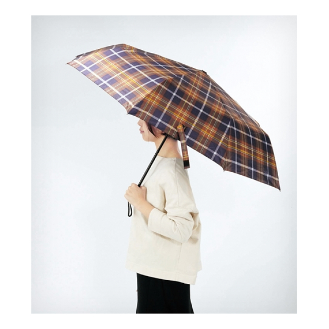 AB-01C 晴雨兼用UVカット折りたたみ式チェック傘 8本骨 56cm ブラウン 69-02001