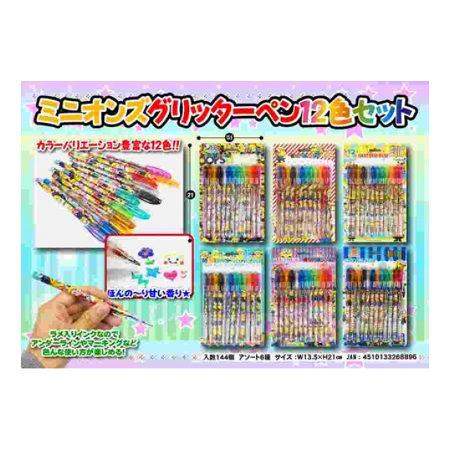 ミニオンズ キラキラグリッターペン 12色セット SY-2187