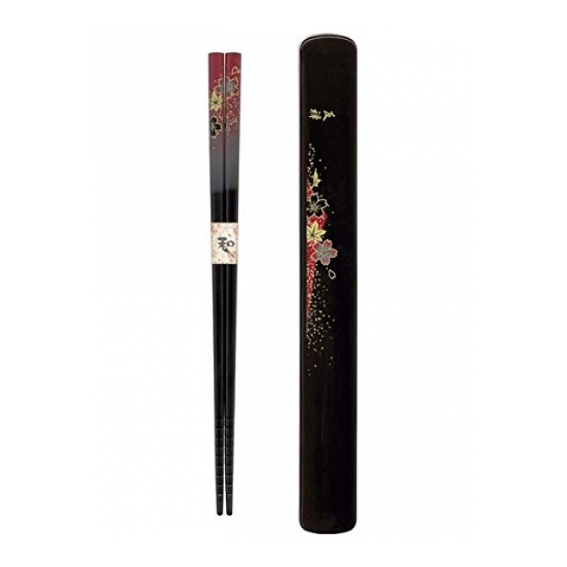 日本製 Japan 若狭 田中箸店 箸・箸箱ペア 華友禅 朱 22.5cm 090016