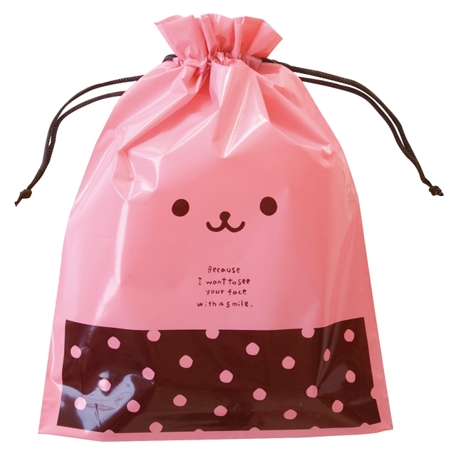うさこの顔アップのプリントが可愛いPE巾着バッグです。お子様にも大人気!巾着型なので簡単にラッピングできることろも魅力。くまおバージョン(CDB-3NS)もご用意しています。ヒモ通し位置から下部までの高さは約240mmです。20枚/1パック。
