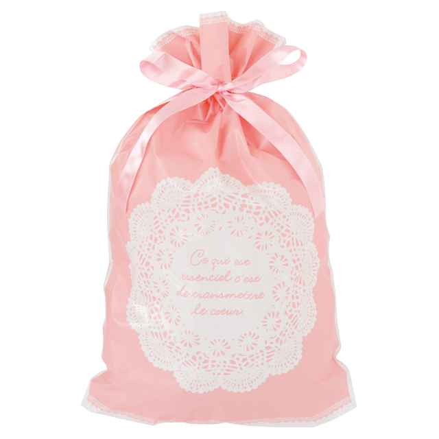 レースリボン付PEギフトバッグ-M