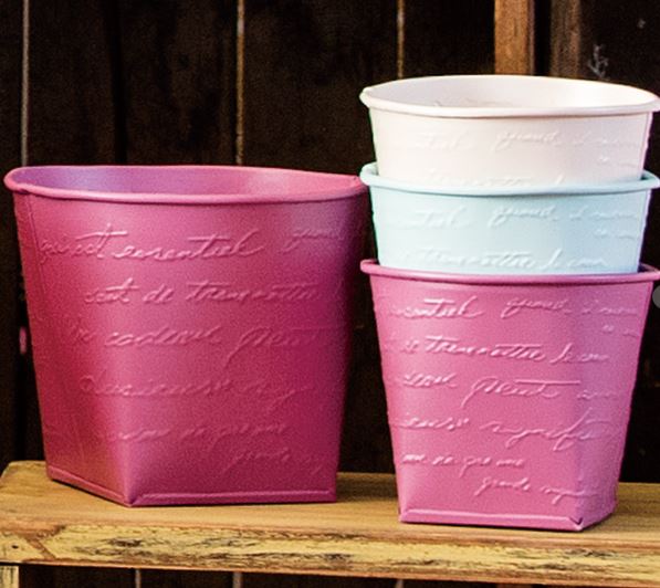 ブリキでできたポットです。お花を引き立てる色にこだわりました。エンボスで浮き上がるフランス語が主張しすぎずオシャレな雰囲気を出してくれています。\r\n母の日やホワイトデイにも人気のアイテムです。\r\n3色×2サイズ展開です。