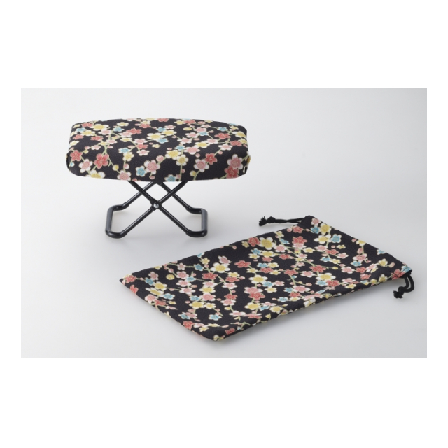 折り畳める正座椅子に華やかな和柄のデザインをバリエーション豊かに揃えました。こちらは「夜光梅」のゆったりサイズです。