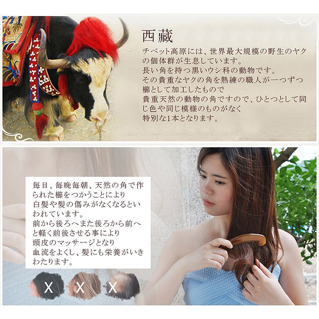 I-HNHT チベット高原に生息するヤクの天然白水牛の角貴重な白水牛の角からできた天然櫛 多種多様な模様が特徴 水牛角櫛 天然櫛 自然 くし 静電気 ヘアブラシ コーム