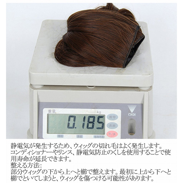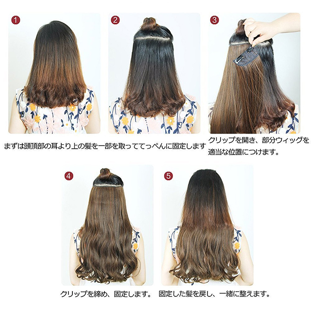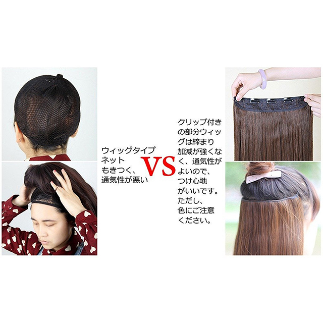 クリップ付きの部分ウィッグのほうが締まり加減が強くなく、通気がよいので、つけ心地がいいです。ただし、色にご注意ください。