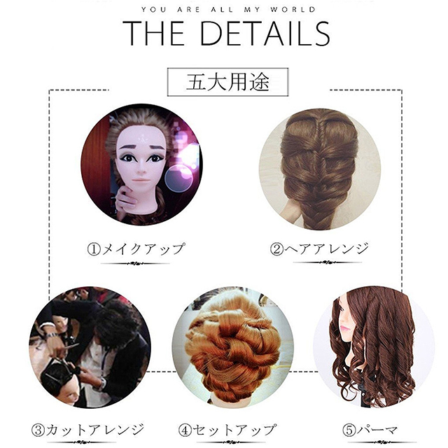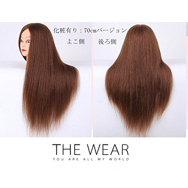 | 美容師さんのカット練習用マネキン 毛質:100パーセント人毛 毛の長さ:人毛70cm人毛60cm それぞれメイク有りバージョンとメイクなしバージョンがあります。 重さ:人毛70cm:210 g 人毛60cm:160g カット練習だけでなく、ヘアアレンジ、編みこみ等パーマ練習にも最適です。 |