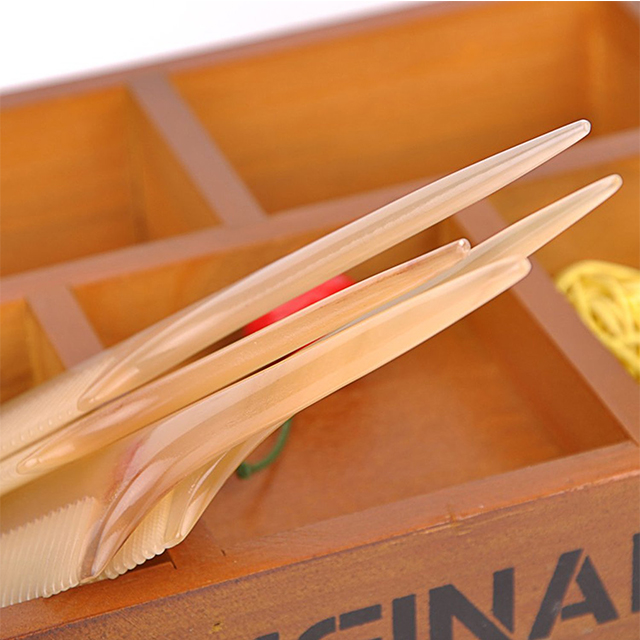 商品には真っ黒な水牛角、白から茶色・半透明なべっ甲色まで色が豊富な黄牛角、より光沢と模様が綺麗なヤクの角の3種類が使われてますが、効果は同じです。