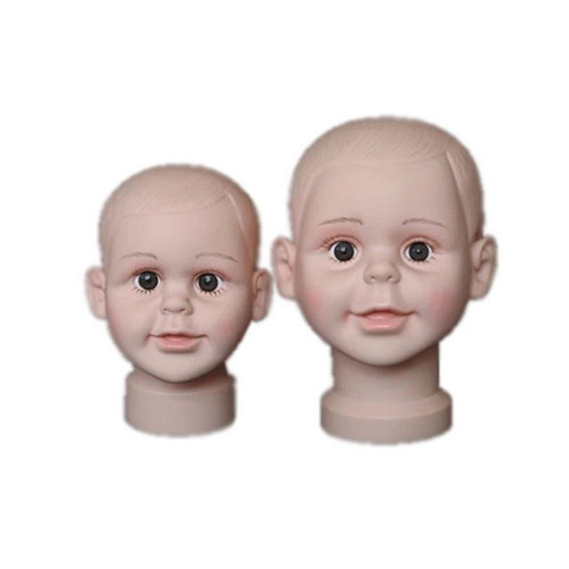 可愛らしい表情が魅力の子供サイズのマネキンヘッドになります。
