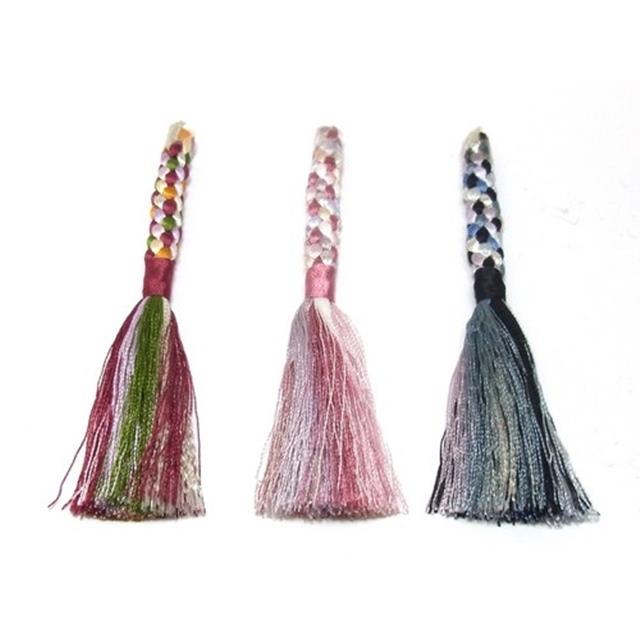 京都で作ってるタッセルです。普段この価格では手に入らないお得な商品です。7色で編み込んでいます。赤(赤・ピンク・パープル・アイボリー・オレンジ・グリーン・シルバー)ピンク(ピンク・濃いピンク・パープル・ラベンダー・アイボリー・ホワイト・シルバー)黒(黒・グレー・ライトグレー・ブルー・パープル・ピンク・シルバー)