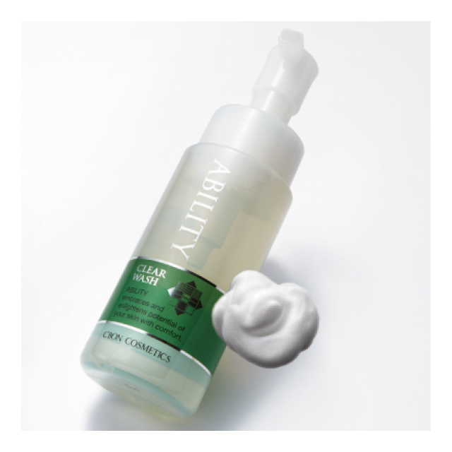 水またはぬるま湯で肌を軽くぬらします。シーボンアビリティ クリアウォッシュを適量(4プッシュ) 手にとり、肌に泡を密着させながら、ふんわりと手で包み込むようにやさしく洗います。