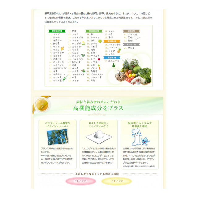 キウイフルーツ果汁に、61種類の原料からなる発酵原液の野草源酵素®と乳酸菌発酵液、米胚芽由来のポリアミンの他、ピクノジェノール®をバランスよく配合。