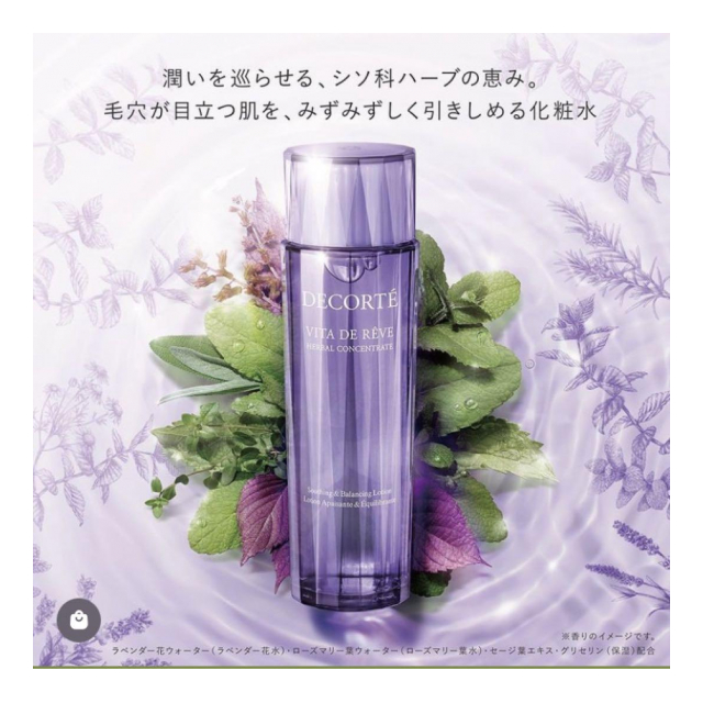 潤いを巡らせる、シソ科ハーブの恵み。毛穴が目立つ肌を、みずみずしく引きしめる化粧水。