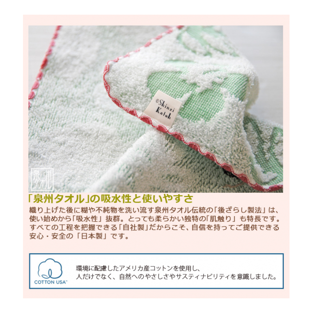 泉州タオルならではの抜群の吸水性とやさしい肌ざわり。