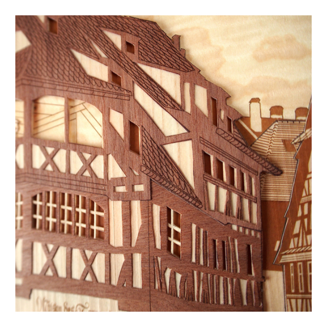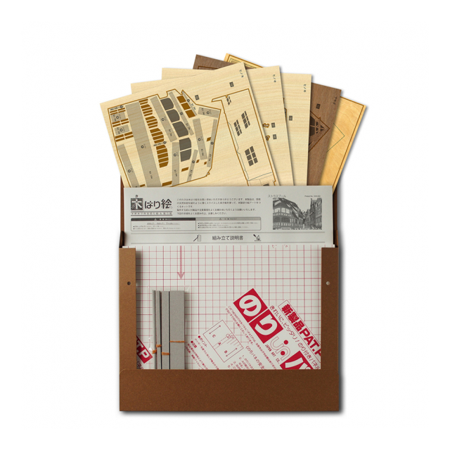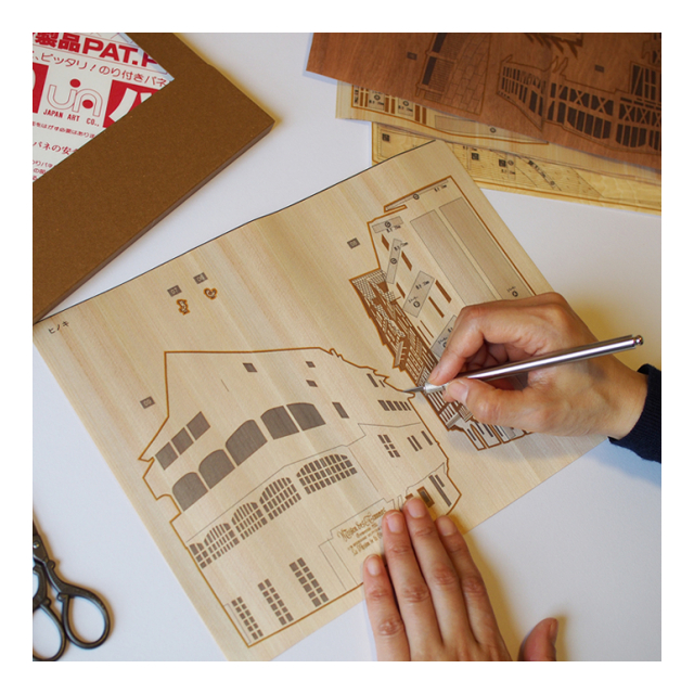 ペーパークラフト感覚で、カッターとボンドさえあれば気軽にできるハンドメイドの木工アートです。