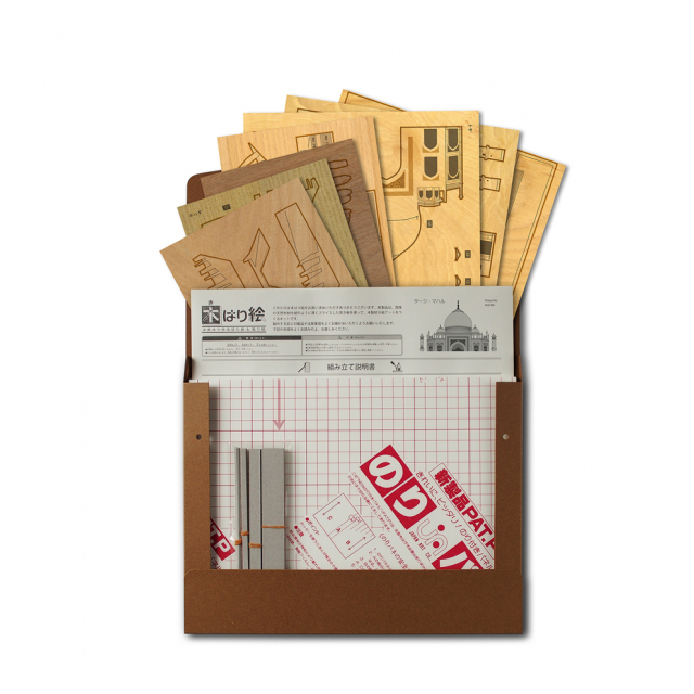 【キット内容】貼り絵用突板、台紙、厚紙スペーサー(かさ上げ用)