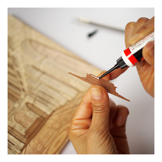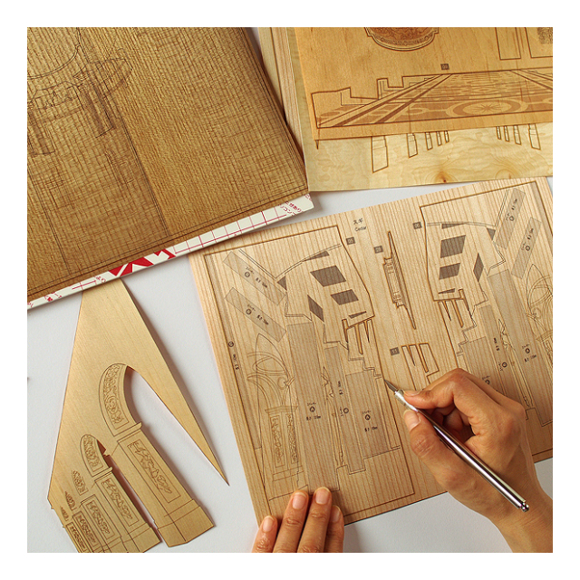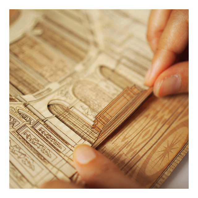 ペーパークラフト感覚で、カッターとボンドさえあれば気軽にできるハンドメイドの木工アートです。