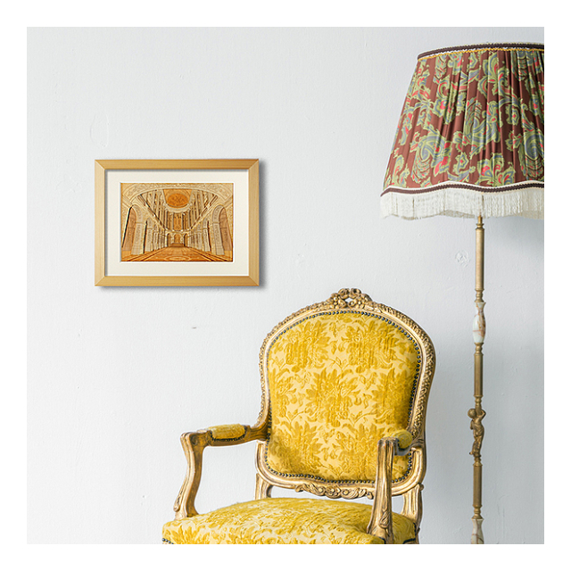 木はり絵では、宮殿内の一番神聖な場所である「礼拝堂」の、ゴシック様式とバロック様式が共存する美しい内部を再現しています。