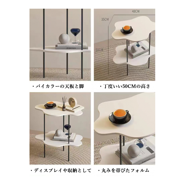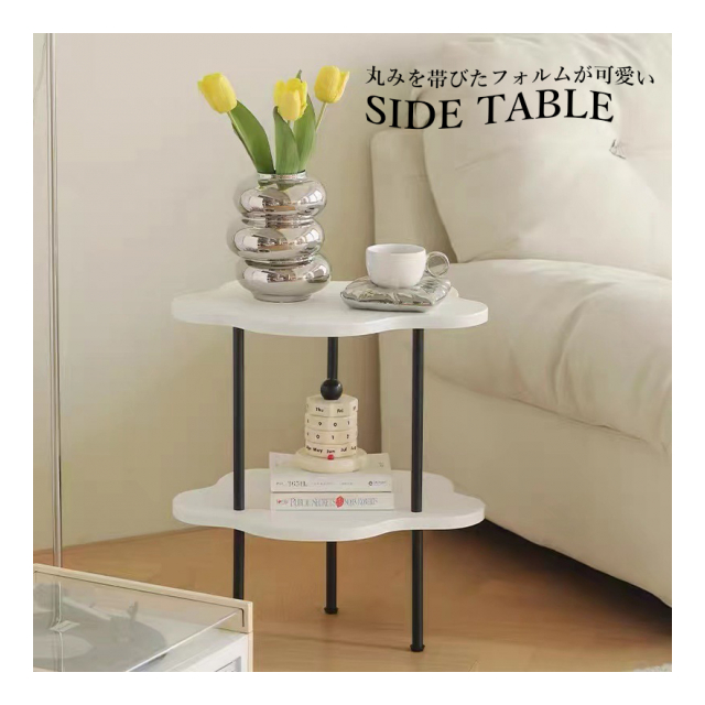 ・丸みを帯びたフォルムが可愛い2段サイドテーブルです。