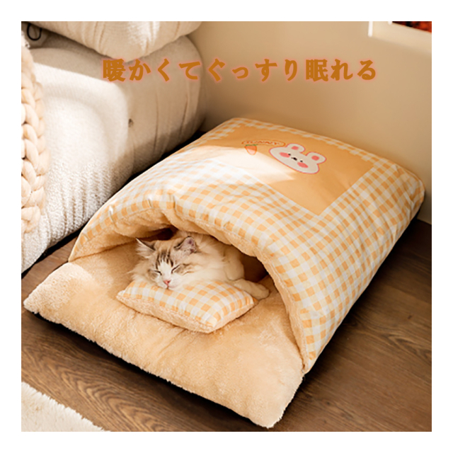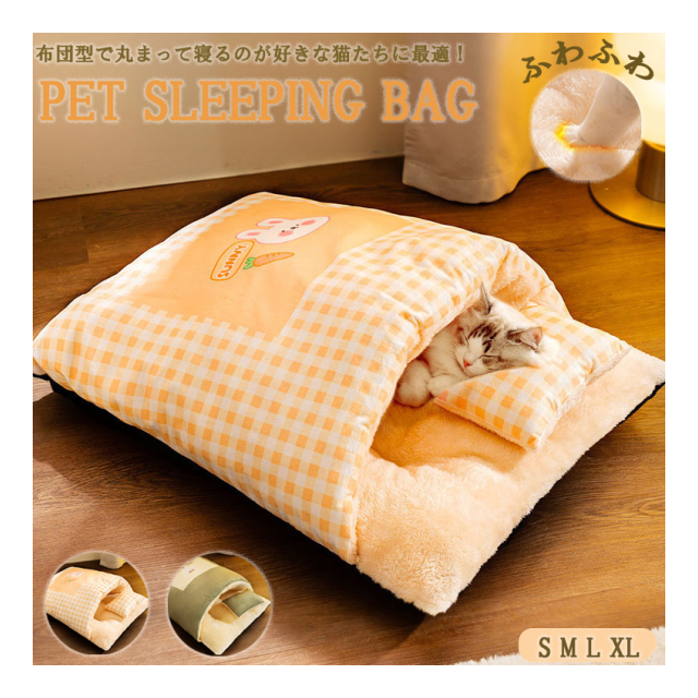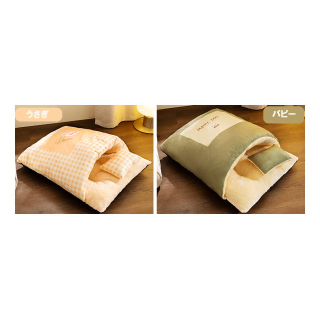 可愛いデザインのペット寝袋 保温防寒性高い 快適 2way使い可能 丸洗い 滑り止め付き