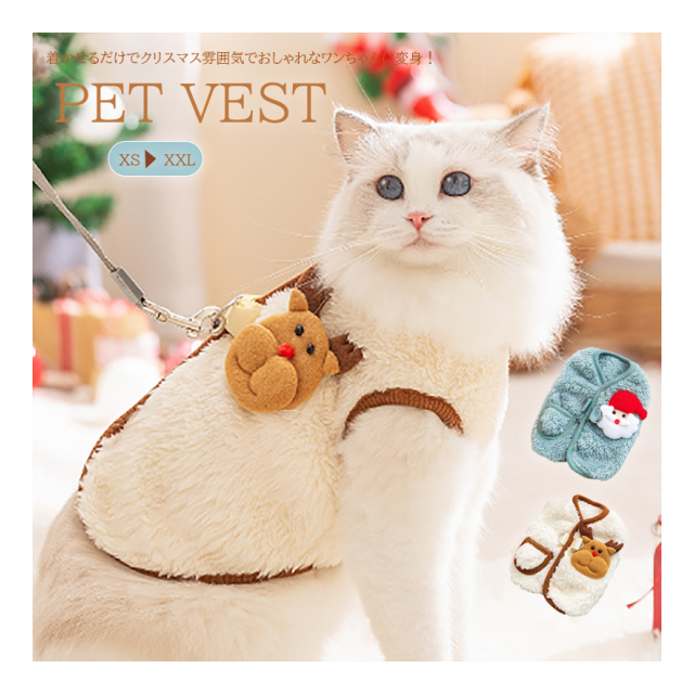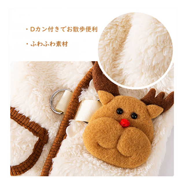 ペット服 可愛いトナカイ サンタクロース 防寒 ふわふわ 犬猫ペットベスト 中小型犬用品